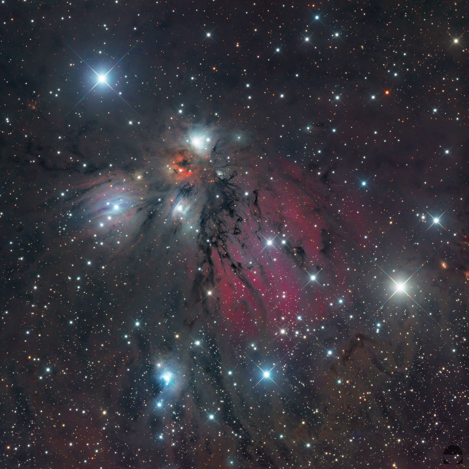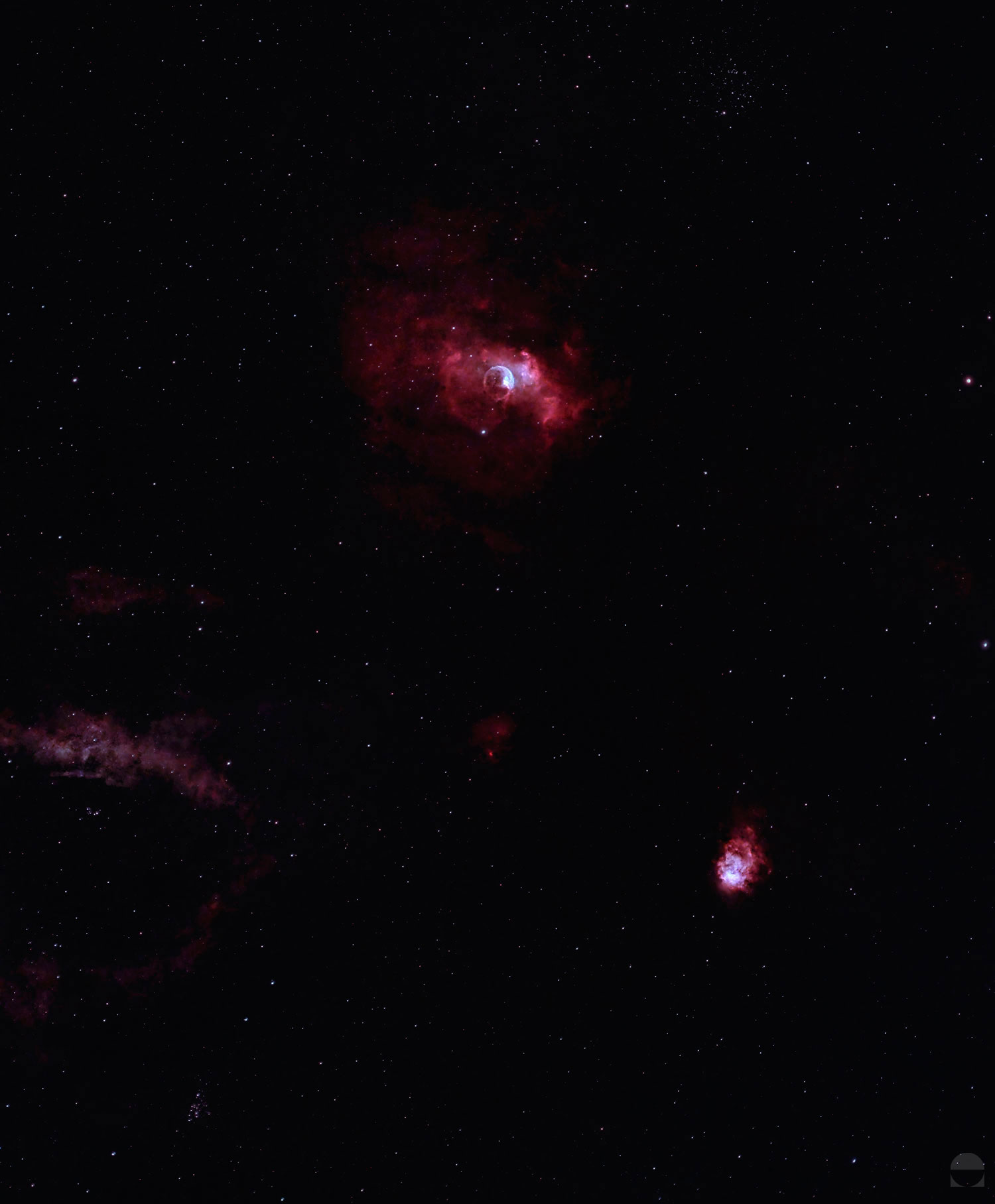 I’m especially interested in nebulae. They are present across the skies and yet hidden. Giant regions of dust and gas are nurseries and birthplaces for new stars, or remnants of those that have died. Extreme gravity, energy and once decoded, beauty. Every time I begin to unravel the data, I am humbled. Final images include upwards of 10+ hours of total actual acquisition/exposure time, and various filters are used. Photons are slowly filling the pixel wells on the specially cooled camera sensor as I’m shooting in the dark. All of the shots require additional calibration exposures that are taken at the end of the night. These are used to subtract sensor noise, vignetting, random dust that might land on the lens through the night etc. All of the frames are combined and “stacked” into the final image. But it doesn’t stop there. Then comes the countless hours to process the data properly. The data (.fits files) that I initially start working with is black except a few faint stars. Background extraction and several other steps are performed before I begin to carefully “stretch” the image across the histogram to coax out the details of the target itself. I use software built specifically for this application called Pixinsight. I appreciate and embrace their methodology of staying as true to the details of the object as possible. I will do some final overall balancing using Lightroom or Photoshop.